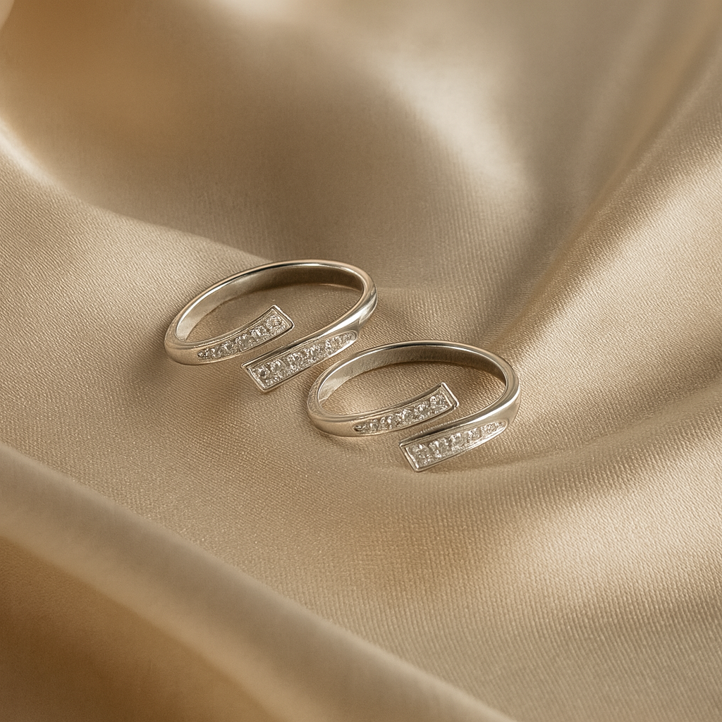 Add a touch of timeless elegance to your everyday style with these beautifully handcrafted 925 Sterling Silver Toe Rings. Designed with a modern open-wrap silhouette, each ring is adorned with sparkling cubic zirconia stones that bring just the right amount of shimmer.