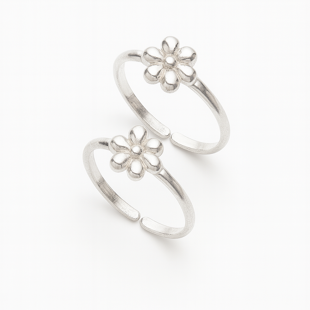 Bring a touch of charm and elegance to your style with these 925 Sterling Silver Floral Toe Rings. Designed with a delicate flower motif, each ring is handcrafted to perfection, featuring six rounded petals that symbolize grace and beauty. The minimal yet elegant design makes them a versatile accessory for both casual wear and festive occasions.