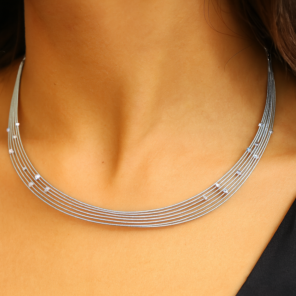 A true embodiment of elegance, the Celestia Silver Strands Necklace adds a radiant charm to every look.