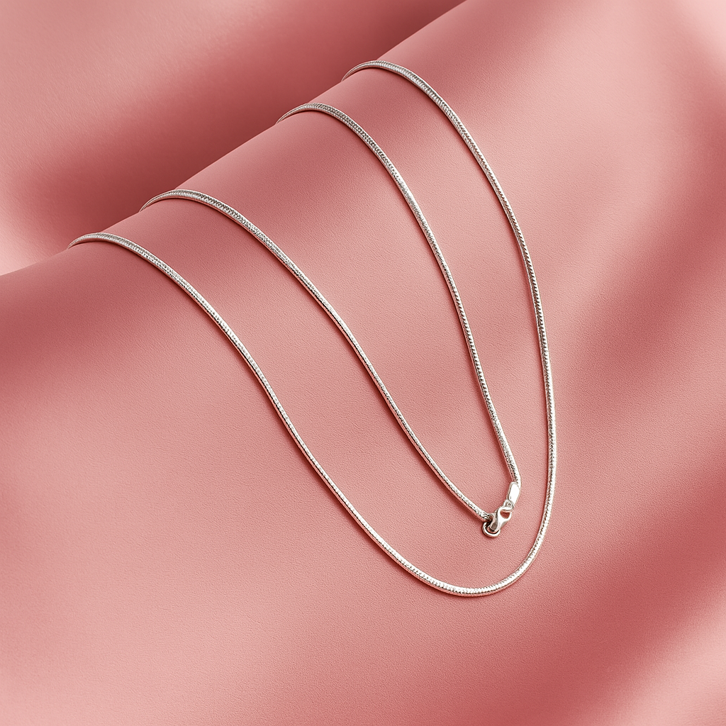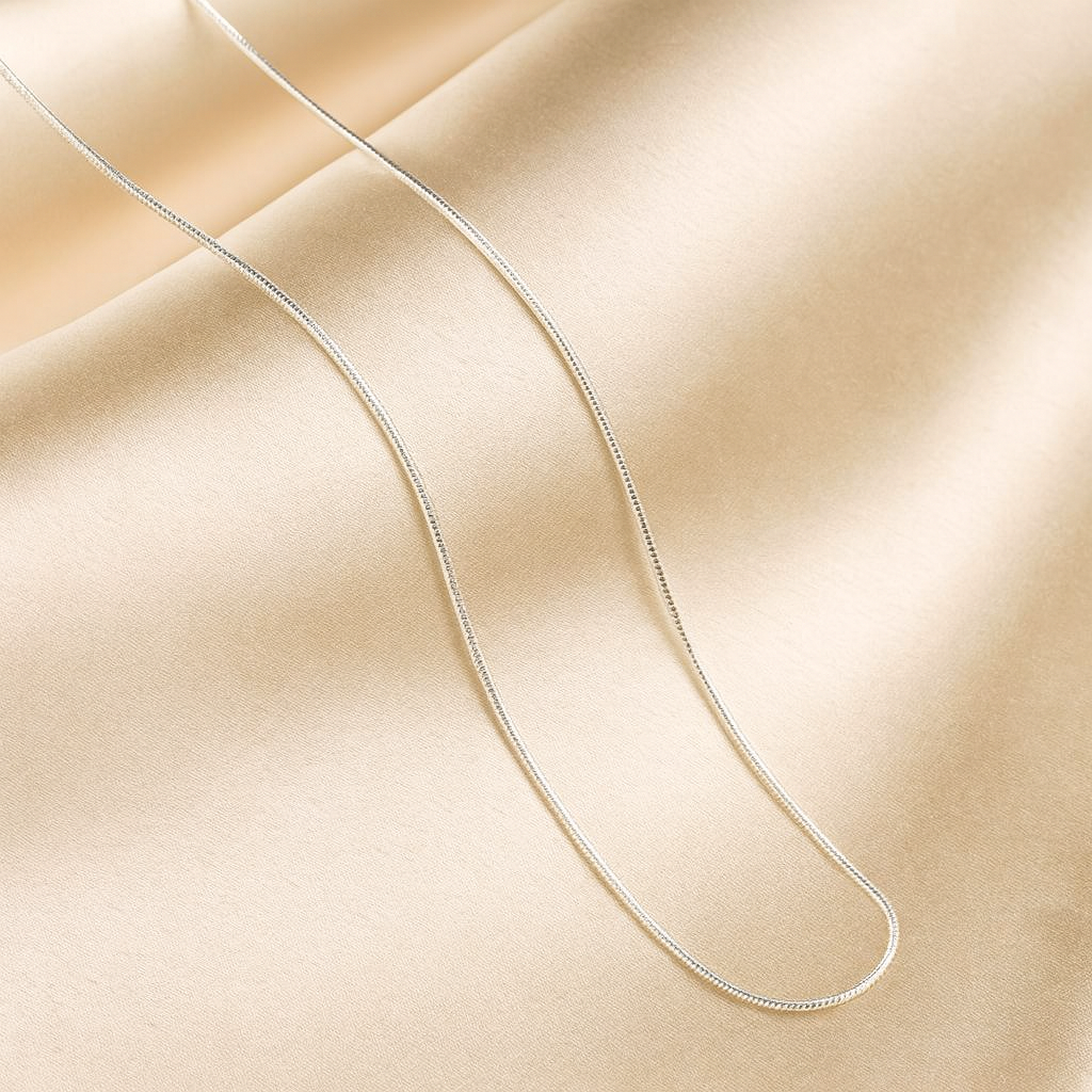 The Chloe Snake Chain Necklace by Mashha is the perfect blend of simplicity and sophistication. Crafted in 925 sterling silver, this sleek snake chain features a smooth, fluid design that drapes elegantly around the neck. Its polished finish enhances the shine, while the sturdy lobster clasp ensures secure wear.