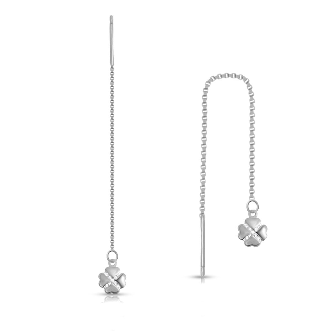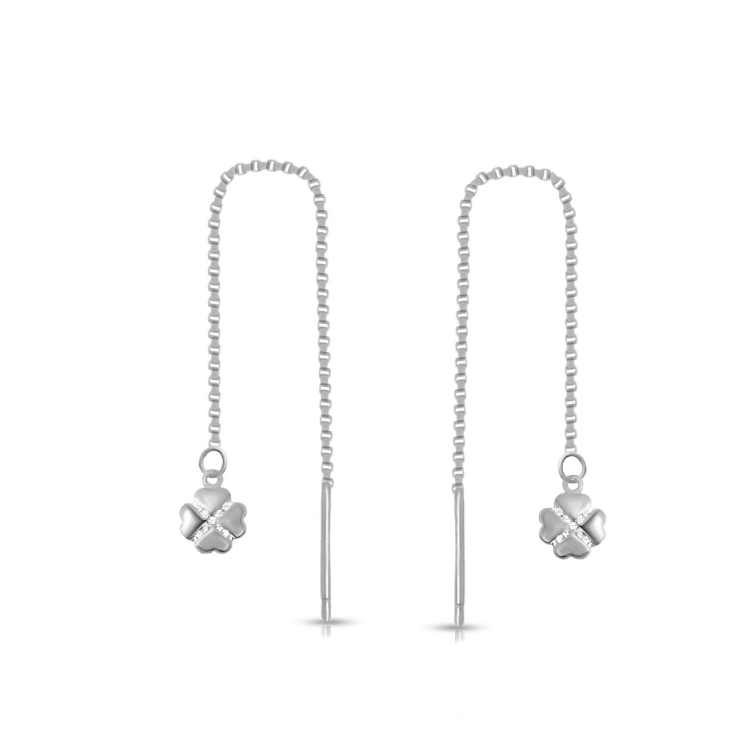 Add a dash of luck and elegance with Mashha’s Clover Glint Threader Earrings. Handcrafted in 925 sterling silver, these graceful earrings feature a delicate four-leaf clover charm suspended from a fine, textured box chain. A subtle band of sparkling CZ stones crosses the charm, symbolizing beauty in every moment.