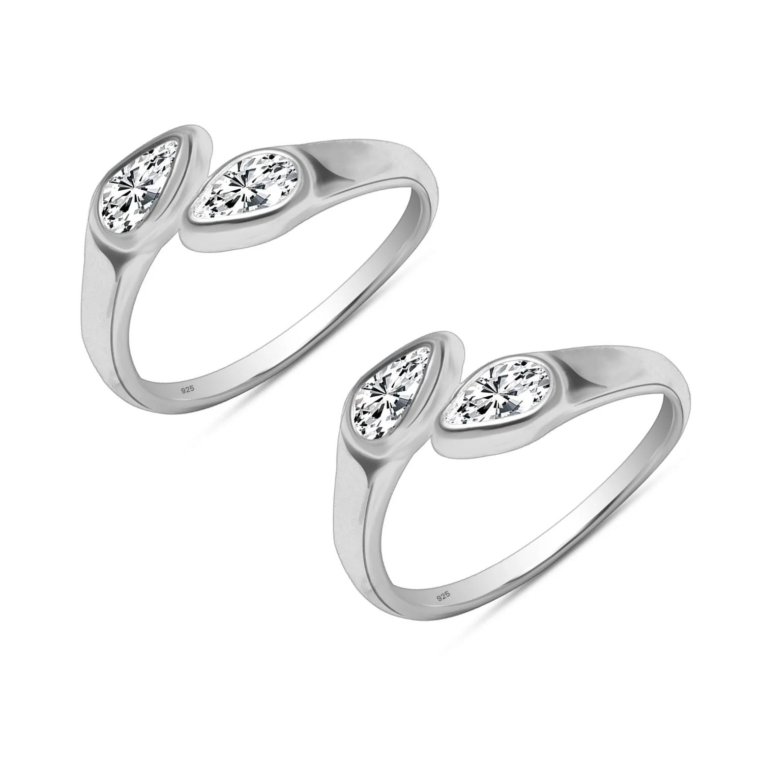 Step into elegance with the Mashha Dual Sparkle Toe Ring, a refined accessory crafted for the modern woman. Made from premium 925 sterling silver, this toe ring features a unique open design, highlighted by two brilliant-cut cubic zirconia stones—one round and one pear-shaped—for a stunning contrast that catches the light with every step.
