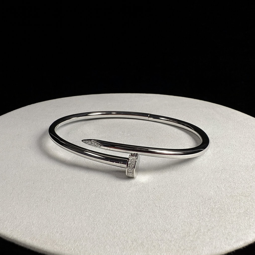 Elevate your style with our Elegant Nail-Inspired 925 Silver Bangle, a statement piece that blends modern artistry with timeless sophistication. Crafted from premium 925 sterling silver, this sleek bangle is designed in a unique nail-inspired silhouette, symbolizing strength and elegance. The head of the bangle is delicately adorned with sparkling cubic zirconia stones, adding a subtle touch of brilliance to its polished finish.