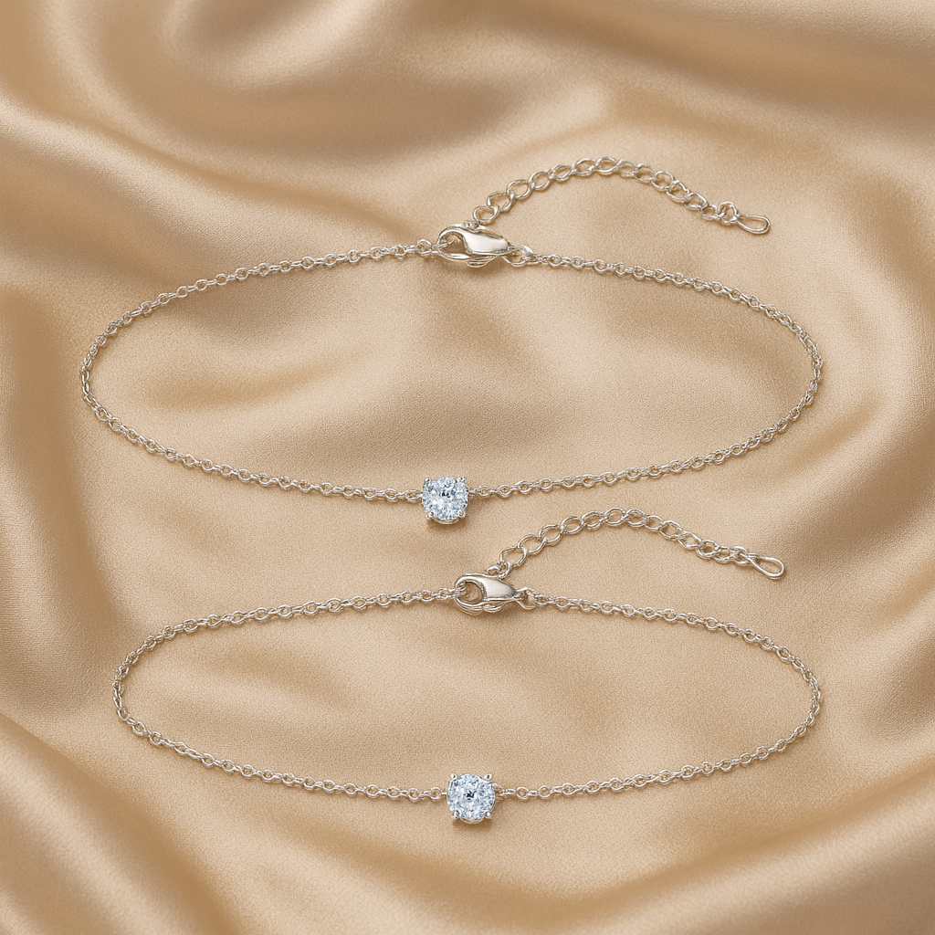 Elevate your everyday style with this timeless 925 sterling silver anklet, designed with a delicate chain and a dazzling solitaire at its center. Crafted for elegance and comfort, this anklet blends minimalism with sophistication, making it perfect for both casual wear and special occasions.