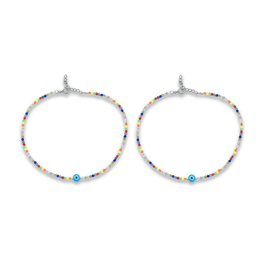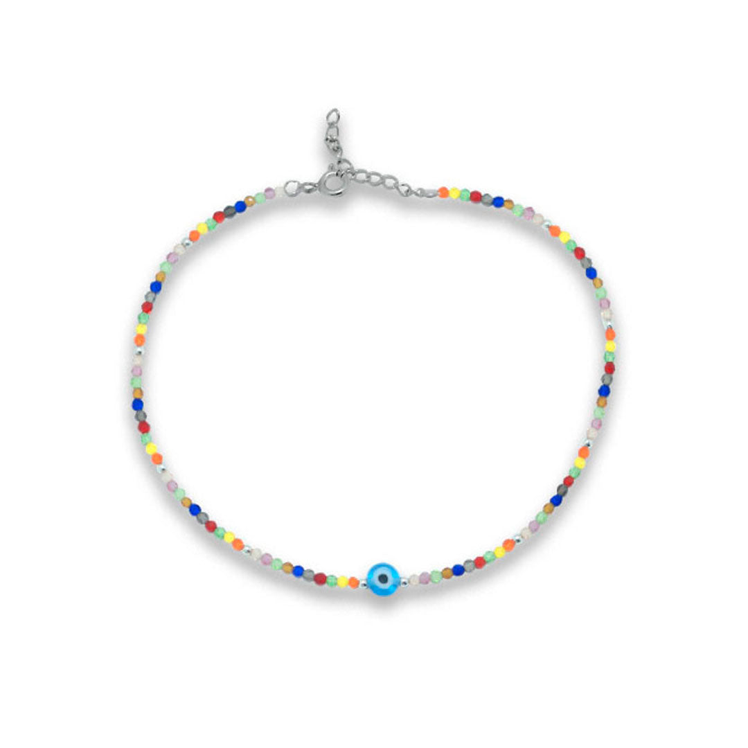 Masha Evil Eye Rainbow Bead Silver Anklet