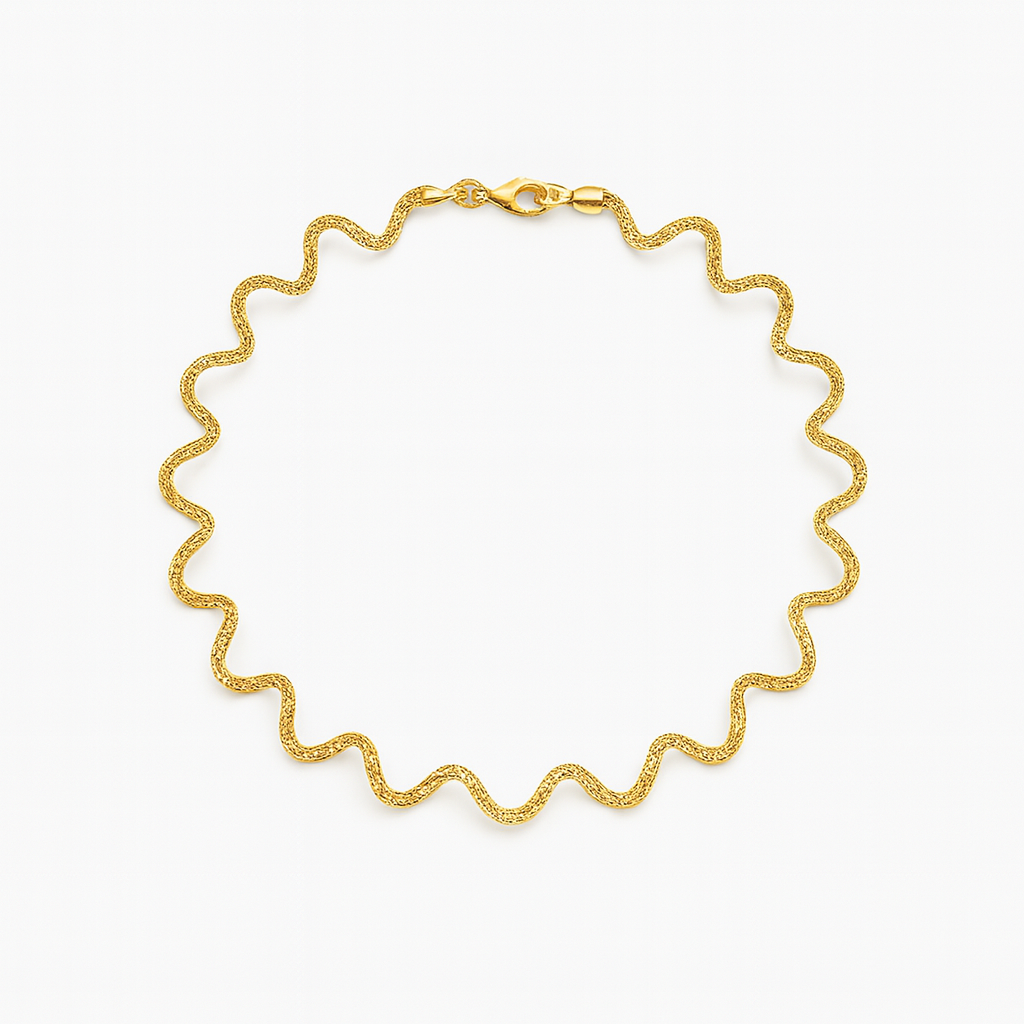 The Golden Wave Anklet Duo by Mashha 925 Silver is a perfect blend of elegance and modern charm. Crafted with precision, these anklets feature a unique wavy design that reflects light beautifully, adding a touch of luxury to every step. The intricate texture enhances their shine, while the secure clasp ensures comfort and durability.