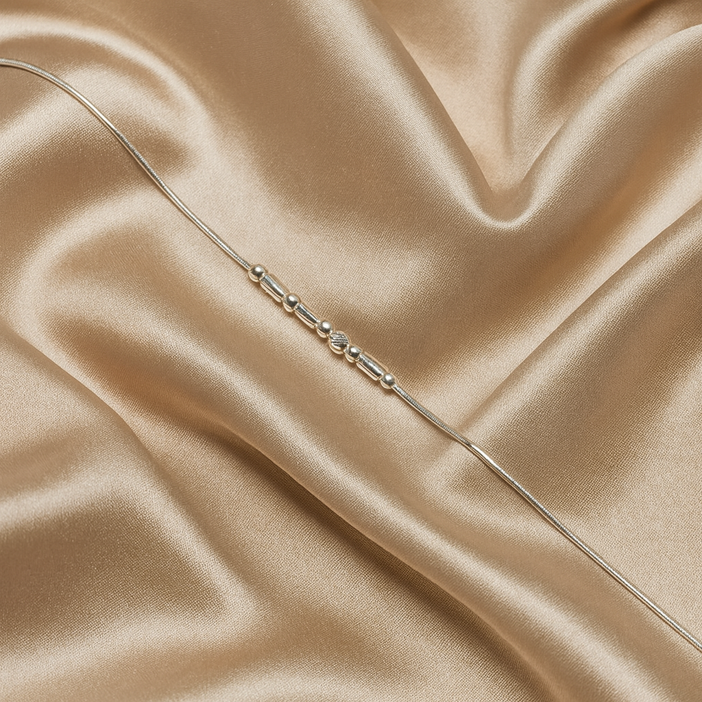 Elevate your everyday elegance with the MASHHA 925 Silver Dual Layer Beaded Anklet, handcrafted to perfection in pure sterling silver. Designed with twin sleek snake chains and delicately polished silver beads, this anklet brings a refined touch of sophistication to your feet. Its minimalist yet graceful design makes it ideal for both daily wear and special occasions.