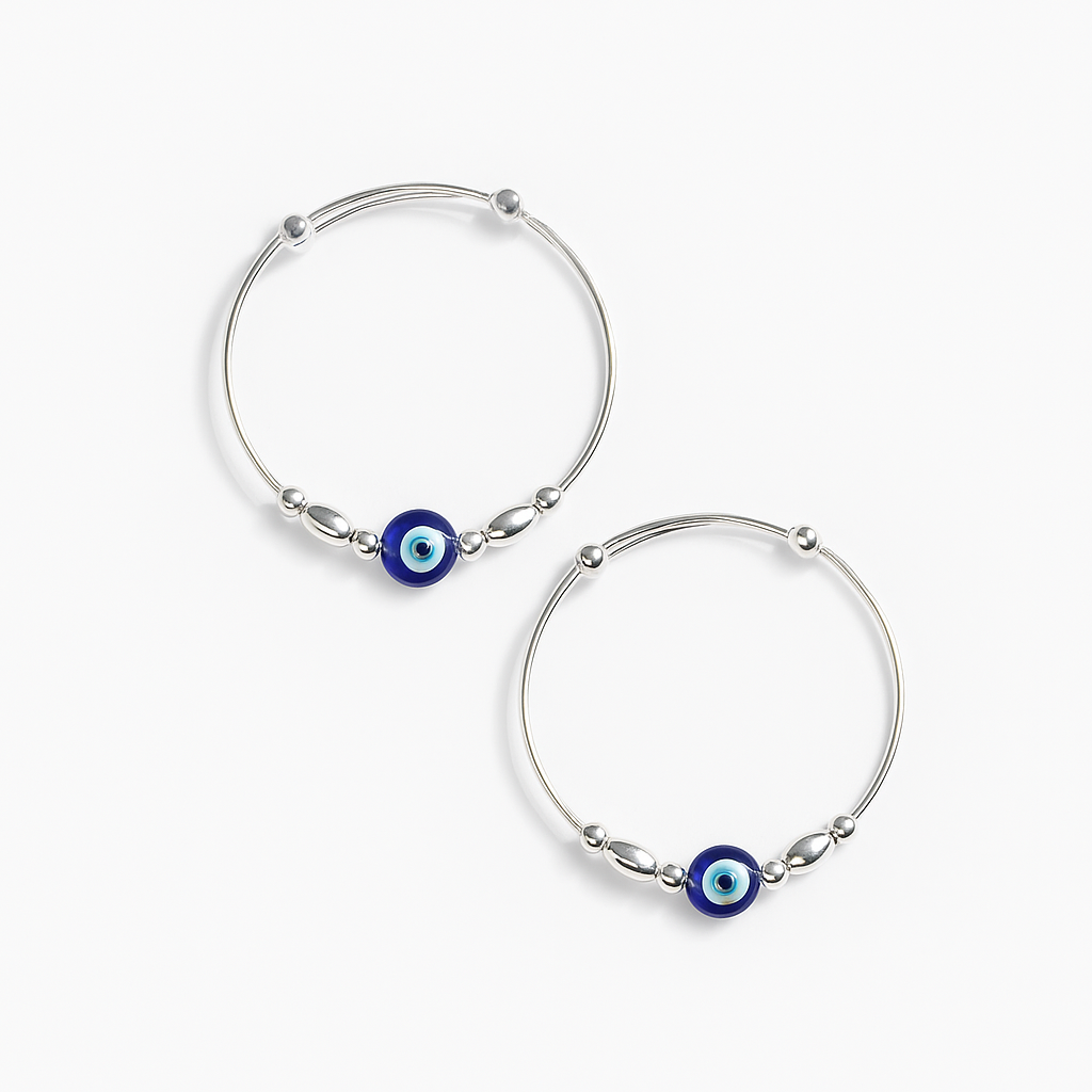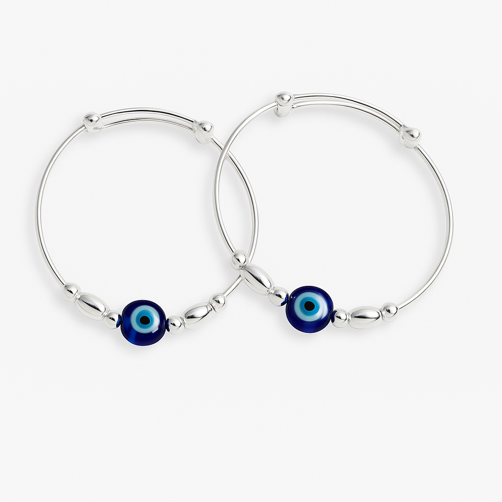A little sparkle of love and protection for your tiny one — the Evil Eye Baby Bangle from Mashha 925 is crafted in pure sterling silver and adorned with the signature blue evil eye charm. Symbolizing safety and positivity, these bangles are designed to protect your baby from negative energy while adding a touch of timeless elegance.
