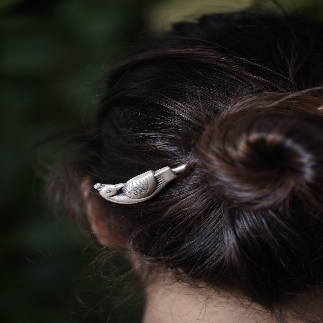 Infuse your hairstyle with charm and tradition through the Mashha 925 Silver Parrot Motif Hair Accessory. Expertly handcrafted in pure 925 sterling silver, this elegant piece features a beautifully detailed parrot perched with poised grace — a symbol of love, beauty, and auspiciousness in Indian culture.