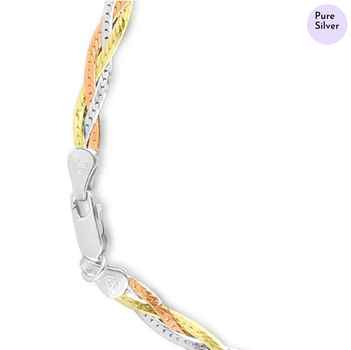 Add a touch of graceful charm to your every step with the Trinity Twist Anklet by Mashha925 Silver. Crafted in pure 925 silver, this elegant anklet features a beautifully braided design in three luxurious tones—silver, gold, and rose gold. The intertwined strands create a harmonious blend of shimmer and sophistication, perfect for both everyday elegance and festive flair.