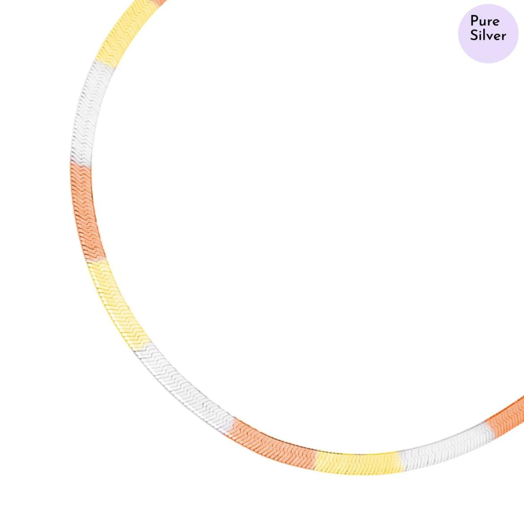 Elevate your everyday elegance with our 925 pure silver anklet, designed in a refined three-tone finish of silver, gold, and rose gold. The minimalist yet chic design sits gracefully on the ankle, making it perfect for both daily wear and special occasions.