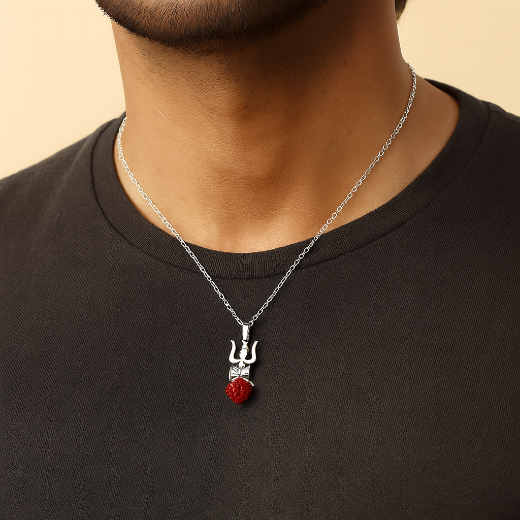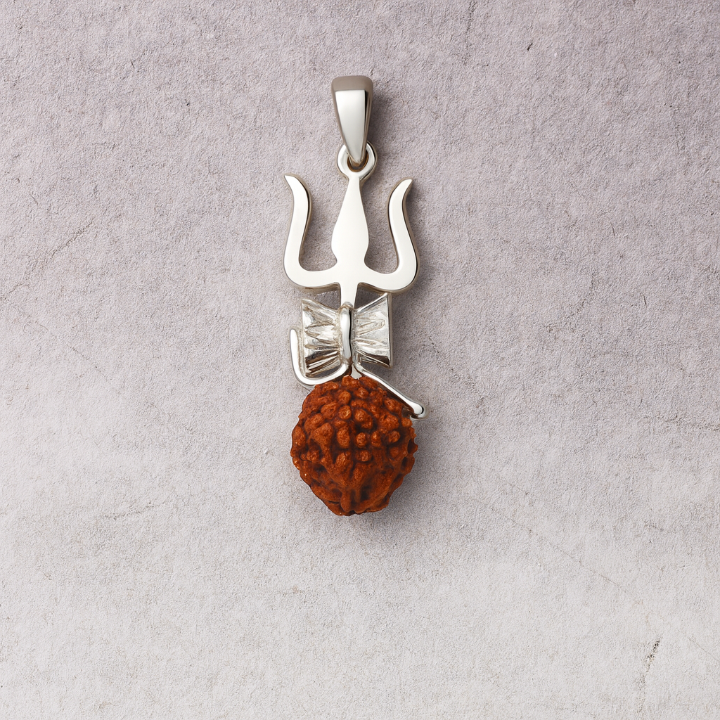 Embody the divine power of Lord Shiva with the Trishakti Rudra Pendant, a timeless symbol of strength, protection, and spirituality. Crafted in pure 925 sterling silver, this pendant beautifully combines the sacred Trishul (trident), the mystical Damru, and an authentic Rudraksha bead.